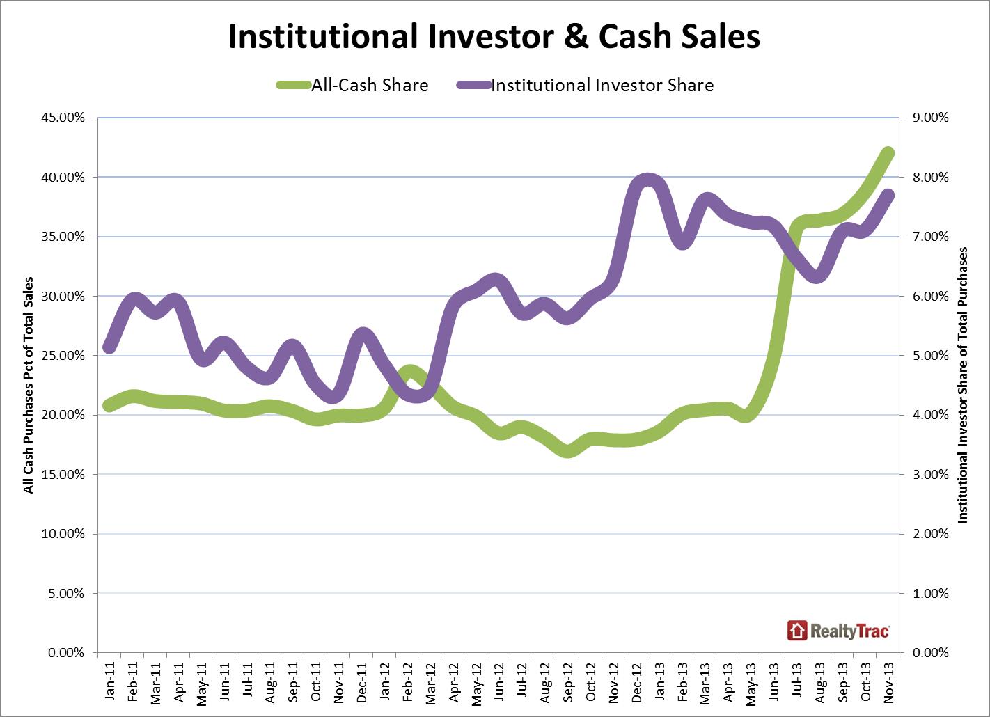 All-cash purchases accounted for 42 percent of all home sales in November, increasing from 38.8 percent in October and reaching its highest level since January 2011.